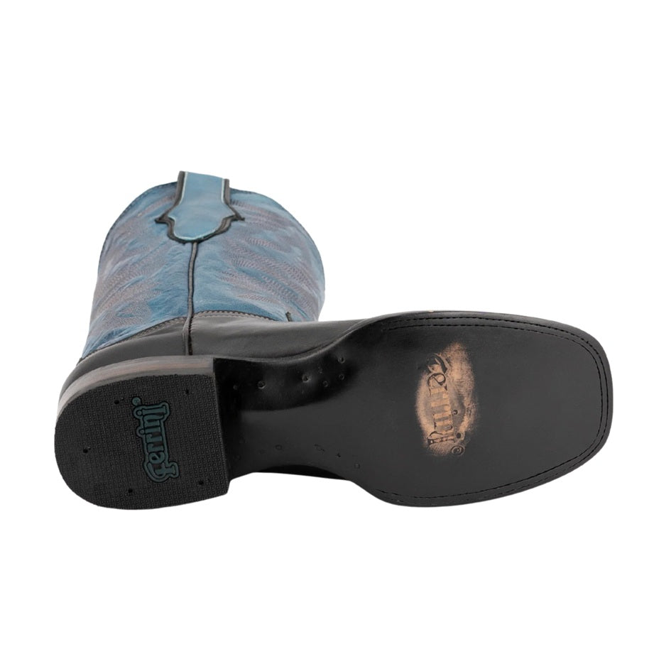 You can’t go wrong with our black and blue square toe boots. The Gunner incorporates subtle signature embellishments from sole to scallop. Here's to you Cowboy.
