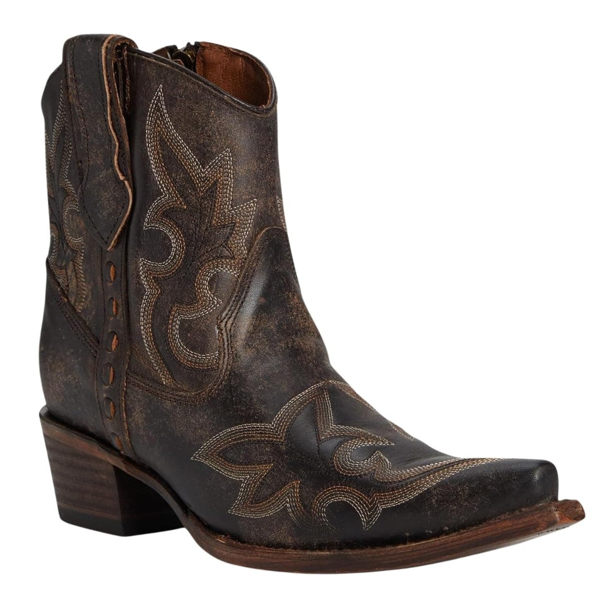 Slip into effortless Western style with the Corral Classic Cowgirl Women's Bootie. Featuring a convenient side zipper and pull handles, these ankle boots make getting dressed a breeze. The premium leather upper showcases striking black and brown embroidery that adds character to any outfit, while the soft leather insole and lining keep your feet comfortable all day long. Whether you're dressing up or keeping it casual, these versatile booties deliver authentic cowgirl charm with modern convenience.