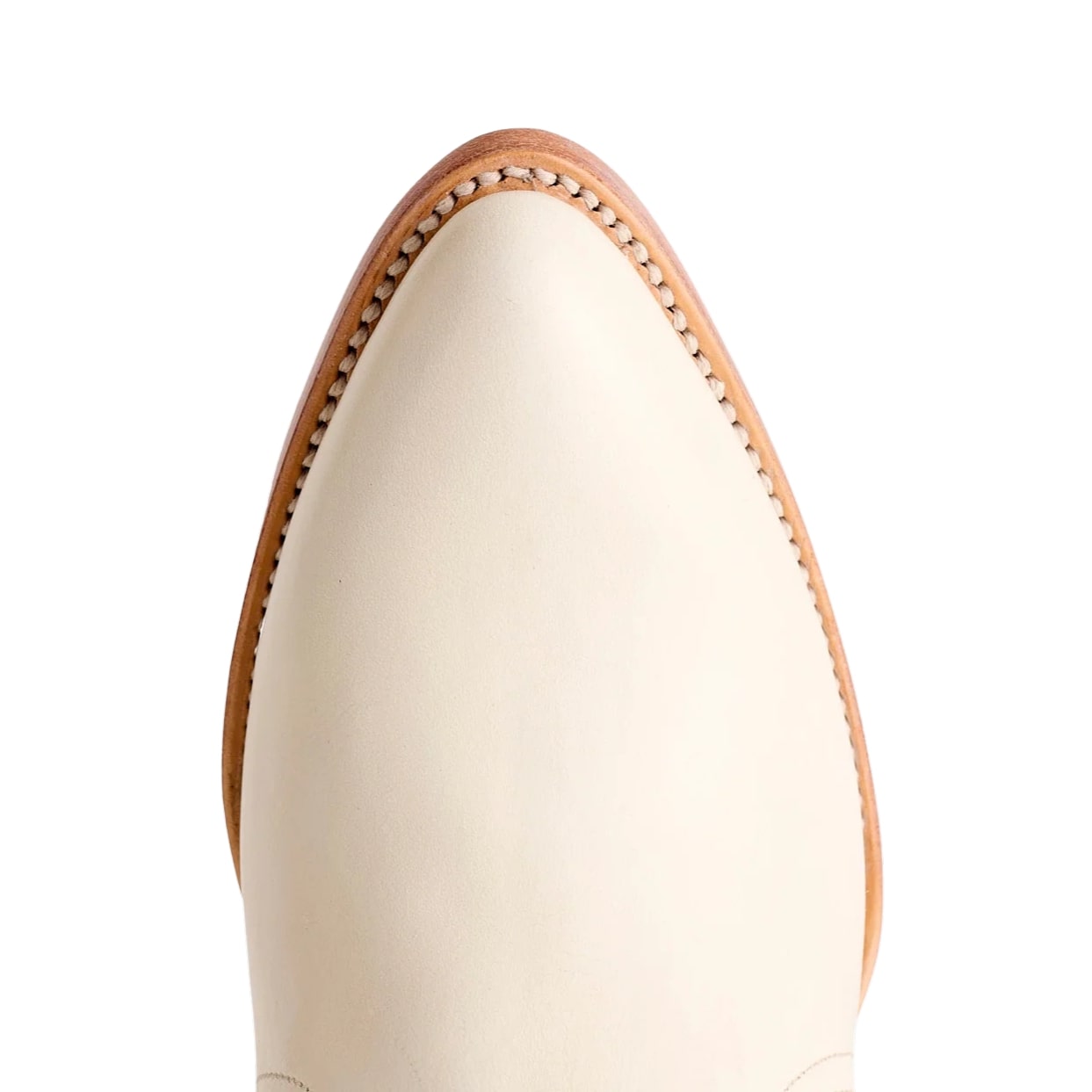 Shanae is a 7-inch bootie with a striking 6-inch zipper that runs along the side, offering both convenience and an added element of modern edge. Intricate whipstitch detailing encircles the boot’s body, a nod to traditional handcraftsmanship. At the same time, the brass studs strategically placed along the seams introduce an industrial touch, adding a sense of strength to the design. These elements work together to create a timeless and contemporary piece.
