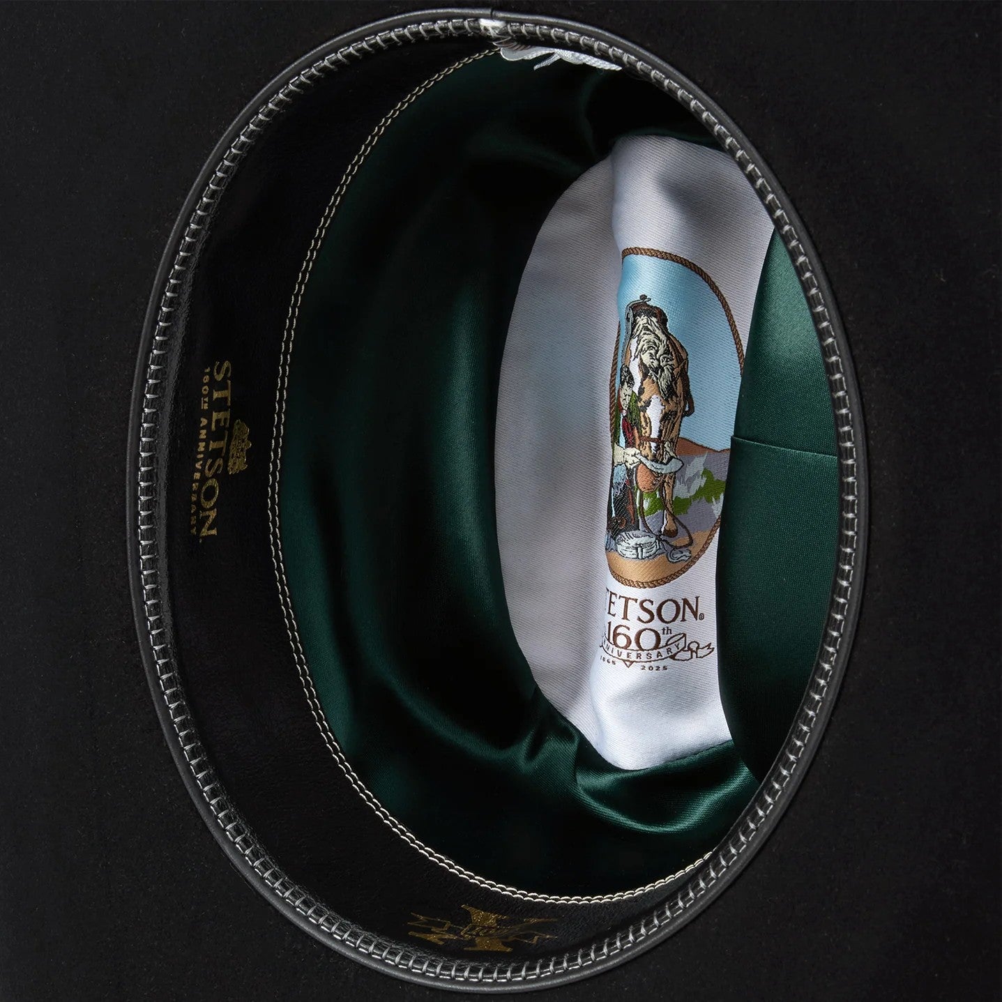 The 160th Anniversary Collection celebrates John B. Stetson’s founding of the Stetson company in 1865. The Golden Eagle 100X is handcrafted in the U.S.A. from the finest 100X quality fur felt. This limited edition hat is marked by a Five Dollar gold coin emblem—a nod to the price paid for the first Stetson ever sold. This emblem includes genuine gold plating, a premium “160” deluxe emerald satin liner, and a custom roan leather sweatband. Each Golden Eagle includes a numbered 100X certificate of authenticity, hard-shell travel case and premier hat box.