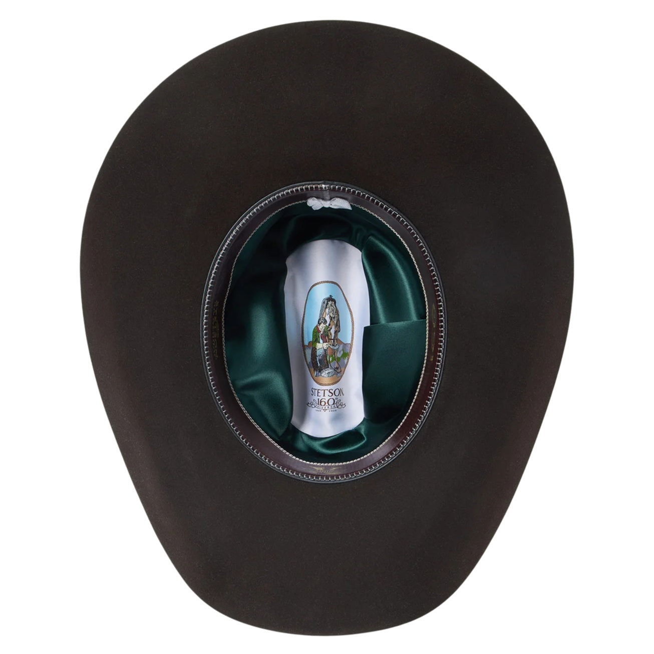 The 160th Anniversary Collection celebrates John B. Stetson’s founding of the Stetson company in 1865. The Golden Eagle 100X is handcrafted in the U.S.A. from the finest 100X quality fur felt. This limited edition hat is marked by a Five Dollar gold coin emblem—a nod to the price paid for the first Stetson ever sold. This emblem includes genuine gold plating, a premium “160” deluxe emerald satin liner, and a custom roan leather sweatband. Each Golden Eagle includes a numbered 100X certificate of authenticity, hard-shell travel case and premier hat box.